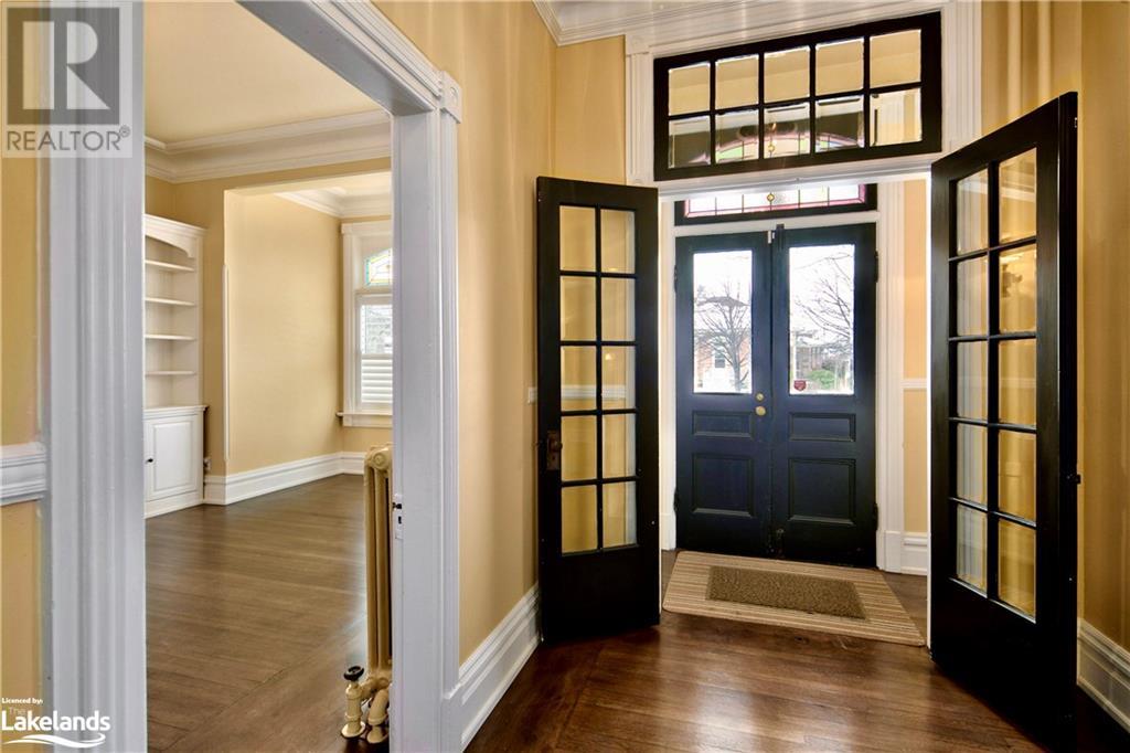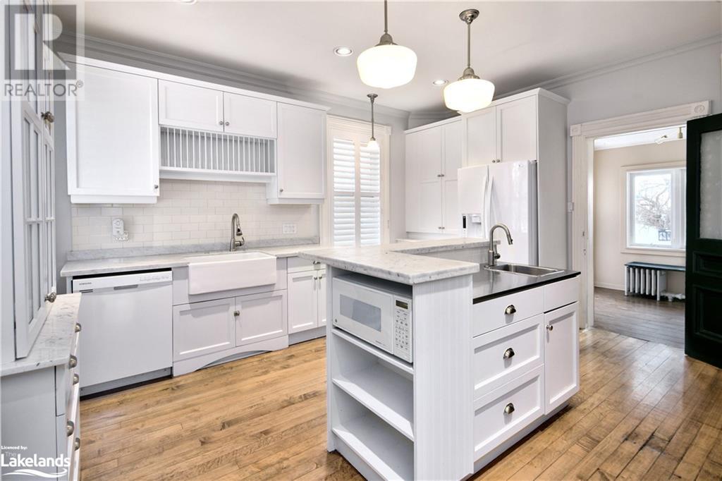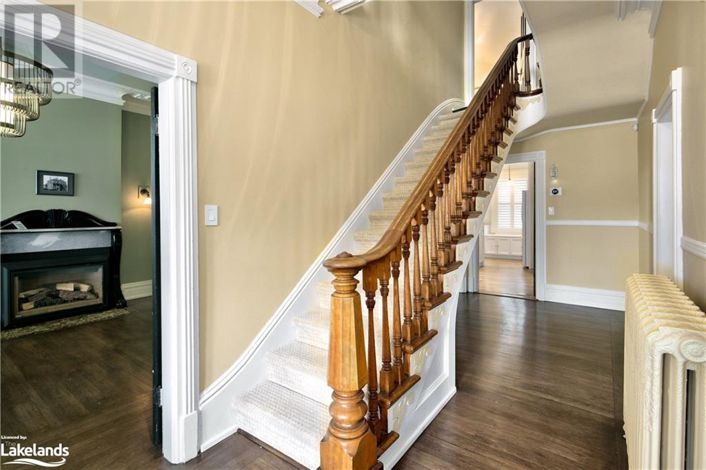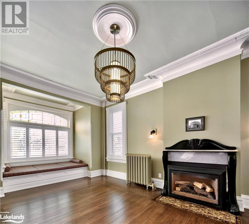 A rare and coveted centre hall plan. Renovated Georgian in the heart of Collingwood. Abundant natural light showcases the soaring ceilings with original cornice moldings and period detailing. Massive period baseboards throughout gives the primary rooms and entrance a truly grand feeling which is accentuated by the period wooden staircase and working gas fireplaces in both main living rooms. A formal parlour with fireplace and built-in book cases use as a parlour, office, and main floor grand master bedroom. The exceptionally large living/dining area likewise has a gas fireplace, flanked by period sconces, and lit by matching period chandeliers. The massive window seat is one of most coveted reading and conversation spots in the home! The kitchen has an additional bar sink and marble island. High end cabinetry and large windows. Large 3 piece bath with heated floors and built-in laundry facilities. Large mud room. The primary bedroom has a double door that grandly opens to present a full dressing room with built-in cabinetry and own access to hall. Could be utilized as an ideal nursery or converted back into a fourth bedroom. There is ceiling access to the attic, which could make a perfect renovation project providing yet another bedroom or den. Spa bath, with 2+ person jacuzzi, open concept shower, toilet, bidet and urinal for the gentlemen. Large 2-person pedestal trough sink on cooper legs. Af ull set of wall cabinetry provides an incredible amount of storage. Beautiful fenced and landscaped courtyard ideal for summer BBQ's! Major Renovations include: 2020: New roof shingling including portico, Exterior Shed re-shingled and painted, Interior paint, gardens updated 2019: Complete Exterior painting 2015: New main floor bath/laundry with heated floors, Stained glass windows in Parlour and Main room re-leaded, floors (excepting kitchen and mudroom) stained and refinished, new exterior metal period fencing around perimeter of property (id:37775) Please visit : Multimedia link for more photos and information |