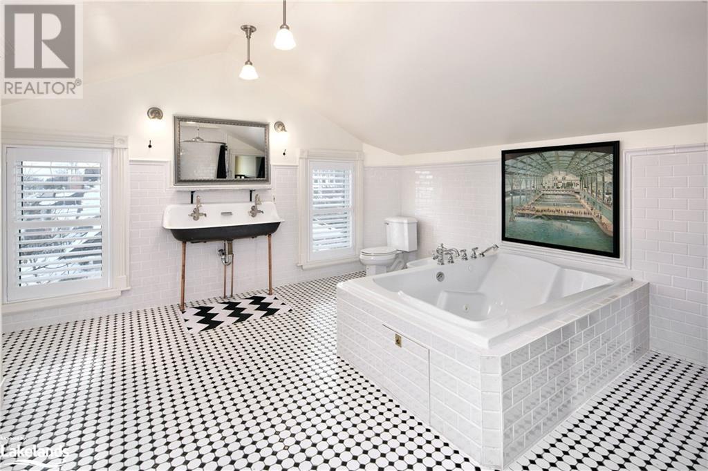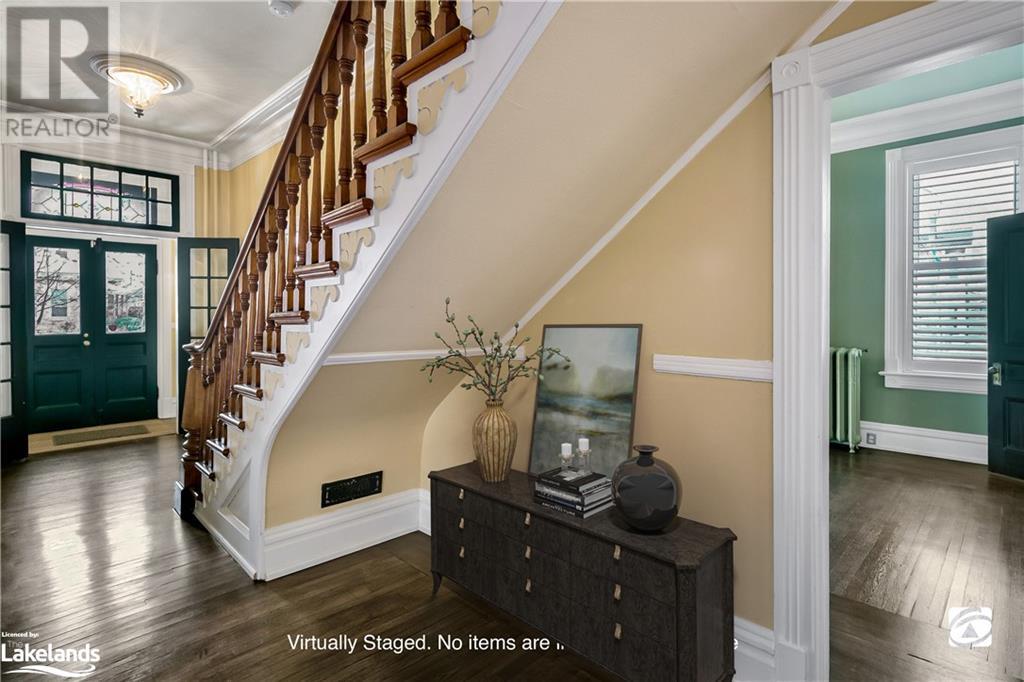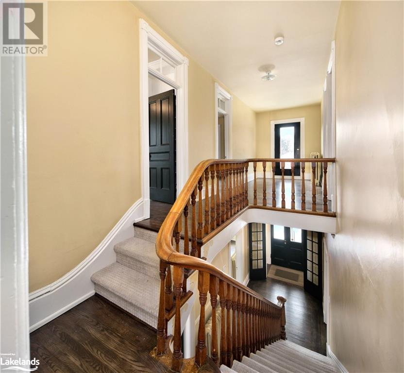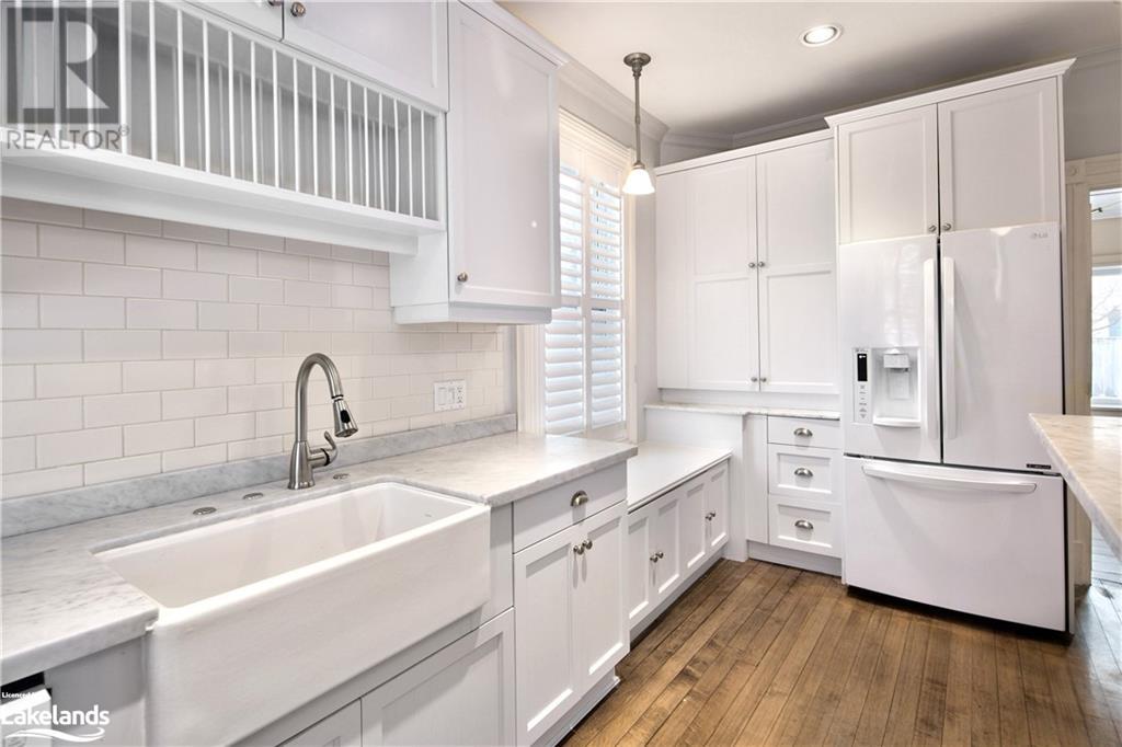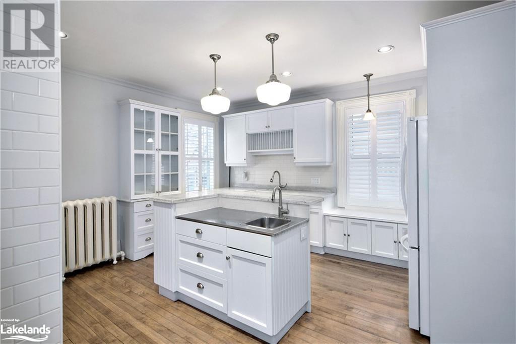 A rare and coveted centre hall plan. Renovated Georgian in the heart of Collingwood. Abundant natural light showcases the soaring ceilings with original cornice moldings and period detailing. Massive period baseboards throughout gives the primary rooms and entrance a truly grand feeling which is accentuated by the period wooden staircase and working gas fireplaces in both main living rooms. A formal parlour with fireplace and built-in book cases use as a parlour, office, and main floor grand master bedroom. The exceptionally large living/dining area likewise has a gas fireplace, flanked by period sconces, and lit by matching period chandeliers. The massive window seat is one of most coveted reading and conversation spots in the home! The kitchen has an additional bar sink and marble island. High end cabinetry and large windows. Large 3 piece bath with heated floors and built-in laundry facilities. Large mud room. The primary bedroom has a double door that grandly opens to present a full dressing room with built-in cabinetry and own access to hall. Could be utilized as an ideal nursery or converted back into a fourth bedroom. There is ceiling access to the attic, which could make a perfect renovation project providing yet another bedroom or den. Spa bath, with 2+ person jacuzzi, open concept shower, toilet, bidet and urinal for the gentlemen. Large 2-person pedestal trough sink on cooper legs. Af ull set of wall cabinetry provides an incredible amount of storage. Beautiful fenced and landscaped courtyard ideal for summer BBQ's! Major Renovations include: 2020: New roof shingling including portico, Exterior Shed re-shingled and painted, Interior paint, gardens updated 2019: Complete Exterior painting 2015: New main floor bath/laundry with heated floors, Stained glass windows in Parlour and Main room re-leaded, floors (excepting kitchen and mudroom) stained and refinished, new exterior metal period fencing around perimeter of property (id:37775) Please visit : Multimedia link for more photos and information |