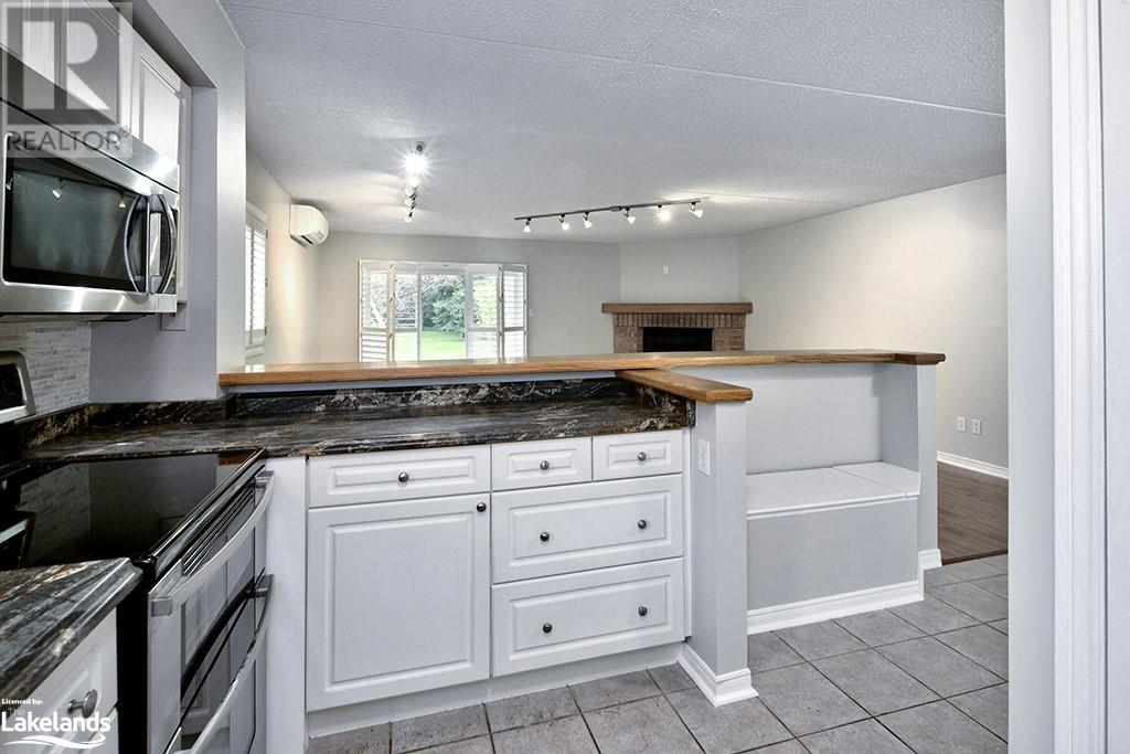 Rarely available upgraded 2 bedroom ground floor condo at Rupert's Landing, one of Collingwood's most highly sought after waterfront communities. Beautiful grounds with mature trees, meandering pathways and a great sense of community. Driftwood model is on one level with no stairs to manage and has a nice location within the development, overlooking greenspace. The unit has 2 exclusive-use terraces, 2 spacious bedrooms, 2 full bathrooms. Large primary bedroom with 4pc ensuite and guest bathroom with walk in shower. Designed with abundant closets and updated kitchen with modern appliances. Large foyer with huge storage closet, and main floor laundry. In excellent condition, and available immediately. Residents enjoy year round access to various amenities, 3 tennis/pickleball courts, indoor pool/hot tub, sauna, exercise, media, & games rooms, squash court, playground & private marina. Advantageously located just off of Hwy 26 & on the shores of Georgian Bay. This prime location provides residents with access to the very best that the area has to offer. Condo Fees include Water/Sewer charges. (id:37775) Please visit : Multimedia link for more photos and information |