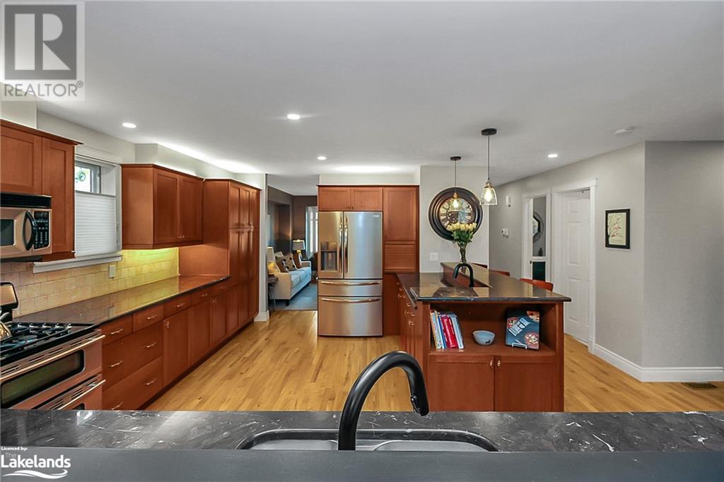Stunning family home situated in a park-like setting with beautifully landscaped yard, walking distance to downtown Collingwood, on one of the most desirable treed streets in the area. This custom-built home boasts 5 bdrms (including a main floor guest bedroom which can be used as an office or den), 3 full bath, engineered maple flooring throughout, a finished basement, oversized tandem garage and shows to perfection. A large kitchen with granite counters, gas stove, stainless appliances has an abundance of counter space. The open concept living/dining area features a sloped vaulted ceiling, gas fireplace and expansive windows with views to your spectacular deck and back yard. Upstairs are 4 bedrooms incl. a Primary Bedroom with updated ensuite. The finished basement is a great place for kids to play or teens to hang out, and most basement furnishings are included! This home shows as a 10++ and is ideal for a family who desires quality craftsmanship, lots of space on a prestigious street with a premium lot. Don't delay in booking your private showing today. (id:37775) Please visit : Multimedia link for more photos and information |
