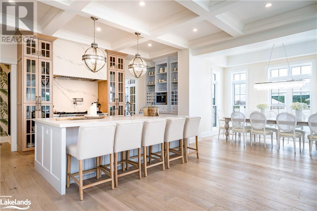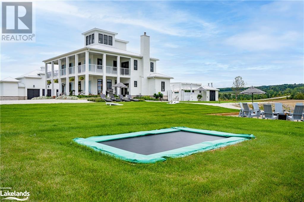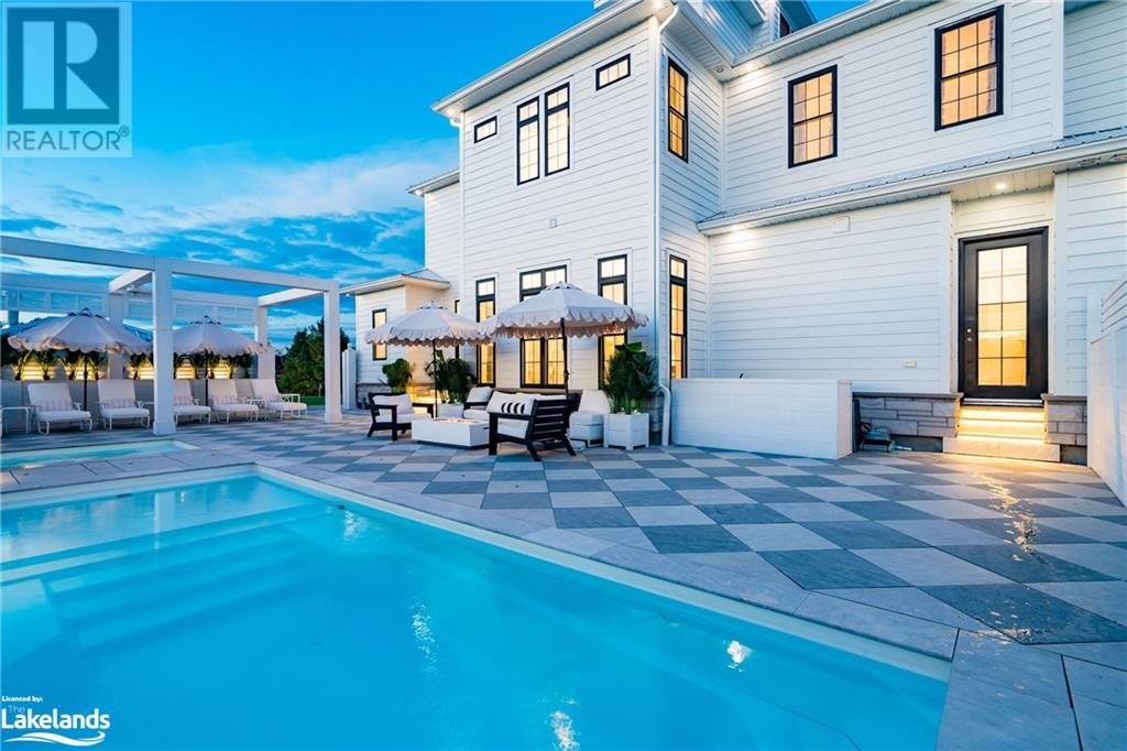 Private Estate with Stunning Mountaintop and Georgian Bay Views. This newly built Property is spread atop a 3-acre breathtaking vantage point. Exquisitely designed & built with impeccable taste and sophisticated design. The main house features 4 bedrooms and 5 bathrooms showcasing natural light, high coffered ceilings and white oak bleached floors. The private Inlaw/Nanny suite is located separately through a modern breeze-way and is a self- contained space with a private kitchen and ensuite bathroom. The designer kitchen features a coffee & wine station, sleek porcelain countertops and custom millwork. Enjoy expansive views from the 2nd floor wrap-around balcony. This home has every imaginable amenity - resort style pool & hot tub, in-ground trampoline, private putting green, gym area, plus a 3.5 car garage. Invite friends to enjoy your favourite movies in the fully equipped theater or relax in the grand living area by the cozy wood burning fireplace. Minutes from THORNBURY & the exclusive GEORGIAN GOLF CLUB. This oasis is built for those who hold design, beauty and tranquility in the highest regard. (id:37775) Please visit : Multimedia link for more photos and information |