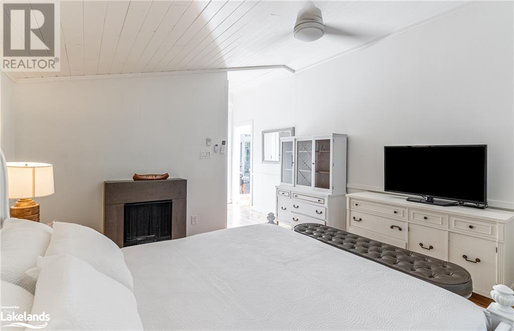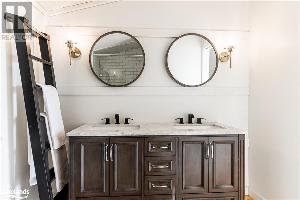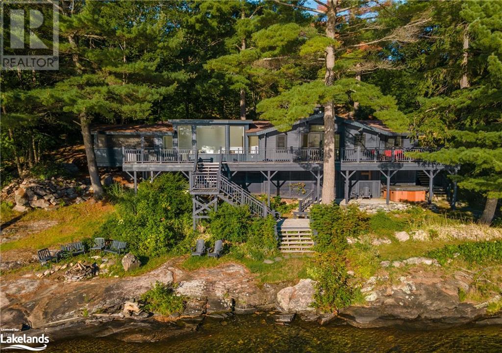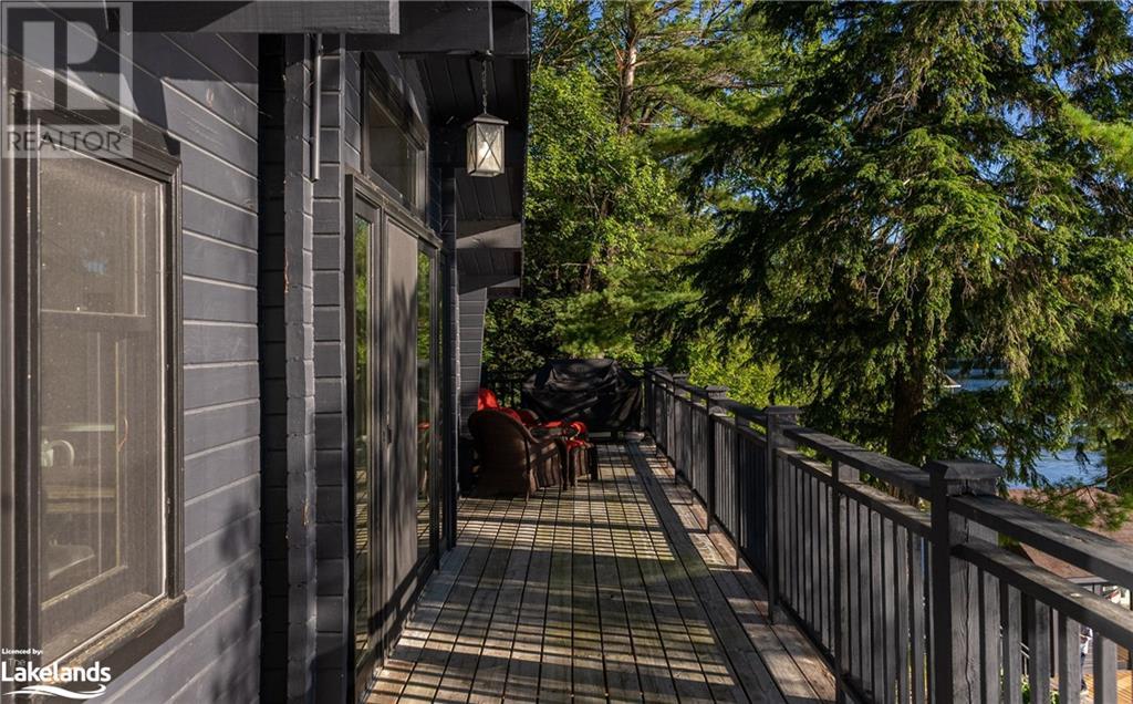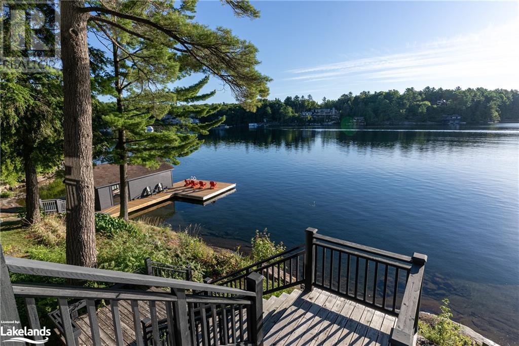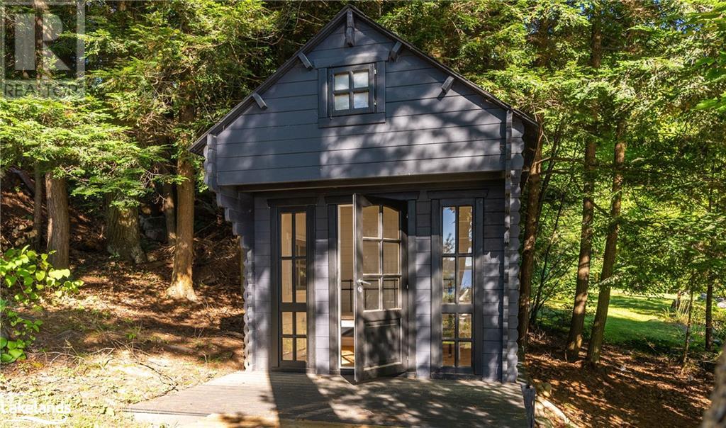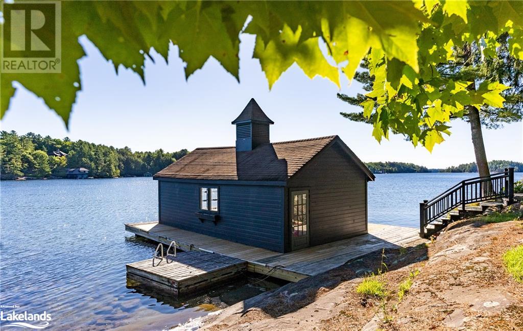 Spectacular lakefront offering on upper Lake Joseph. Four bedroom Two bathroom fully renovated cottage with wrap around deck awaits new memories. Dark lakeside appeal with bright open-concept interior. Lake view windows gracefully welcome natural light into the cottage to showcase bright finishes throughout. Enjoy this accommodating water's edge property in Hamer Bay featuring 230 feet of beautiful low maintenance Lake Joe rock and pine shoreline. Effortless walk-in for swimming and deep water off the dock. Spacious primary bedroom accommodation featuring marble double vanity ensuite with glass rainfall shower, private deck and laundry. An incredible package that offers so much value. Complete with 1.54 acres, single slip boathouse, loft-style Bunkie, lakeside fire-pit, sauna and hot tub. Convenient for Club link Members for accessing golf and local restaurants, just 20 minutes to Port Carling and under 10 minutes from Highway 400, complete the journey to the cottage in less than two hours. (id:37775)