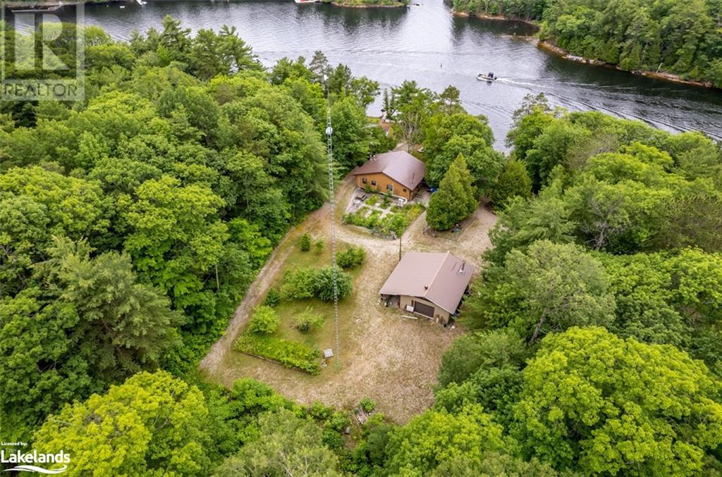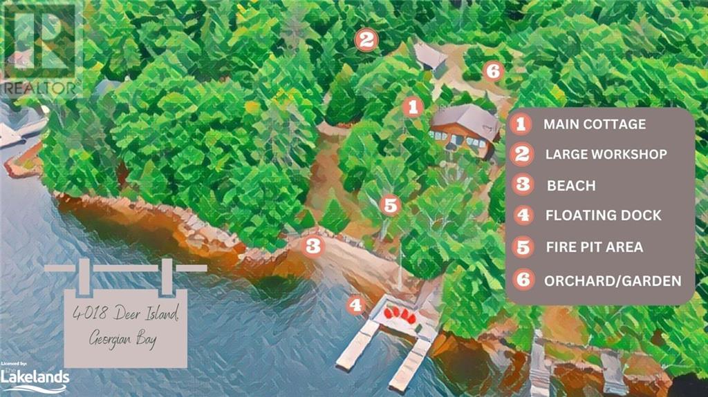 You have to walk this property to believe it. Your own private park setting on 134 feet of Georgian Bay waterfrontage with sand beach, large deck, dock with boat slip & waterside firepit area. Only a 5 minute, sheltered boat ride from the closest marina to Deer Island. Gorgeous mature trees surround the property for privacy with a small, orchard like feel and garden area near the insulated shop at the back. The screened in porch spans the width of the cottage and provides a peaceful, secluded, bug free vantage point to watch the waves lap your private shoreline. 3 Bedrooms/1 bathroom with spacious open concept living on the upper level & 1 bedroom/1 bathroom, laundry room & living area with wood burning stove on the lower level allows for family & friends to have plenty of space to relax & enjoy this wonderful place. Lots of updates to discuss, including new metal roof in 2021 and HVAC. This is a 'must experience in person' property to fully appreciate. (id:37775)