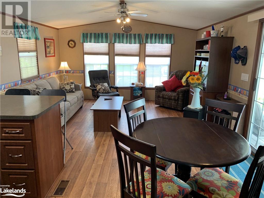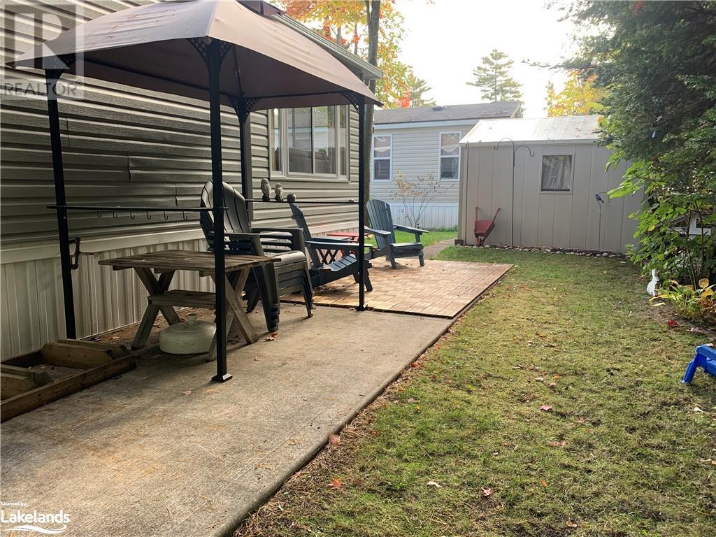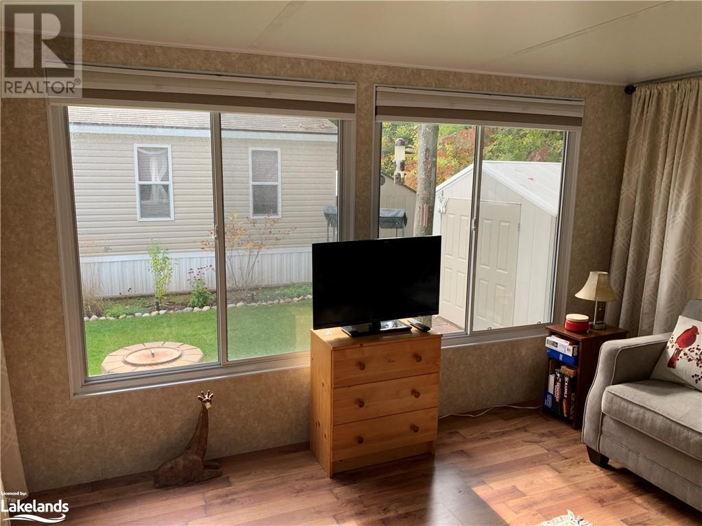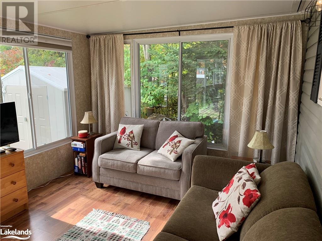 Short walk to the beach! Seasonal retreat in popular Countrylife Resort. (7 months May1st-Nov 15th). This 2010 Northlander Cottager Escape features a 22 x 10 foot deck with full hard roof. Spacious and bright sunroom can be used for extra sleeping area or a quite getaway. Centrally located lot with plenty of space and parking for two cars and a very short walk to the beach. 2 bedrooms 1 bathrooms with lots of room for family and friends. Low maintenance exterior with beautiful lawn and garden, paved driveway, engineered concrete pad under unit and nice size storage shed. Fully furnished with central A/C. This Cottage is ready for your family to start enjoying the summer! Resort features pools, splash pad, clubhouse, tennis court, play grounds, mini golf and short walk to the beach. Gated resort w/security. This unit has been very well maintained and is a pleasure to show! 2023 Seasonal Site fees are $6,765 plus HST (id:37775)
