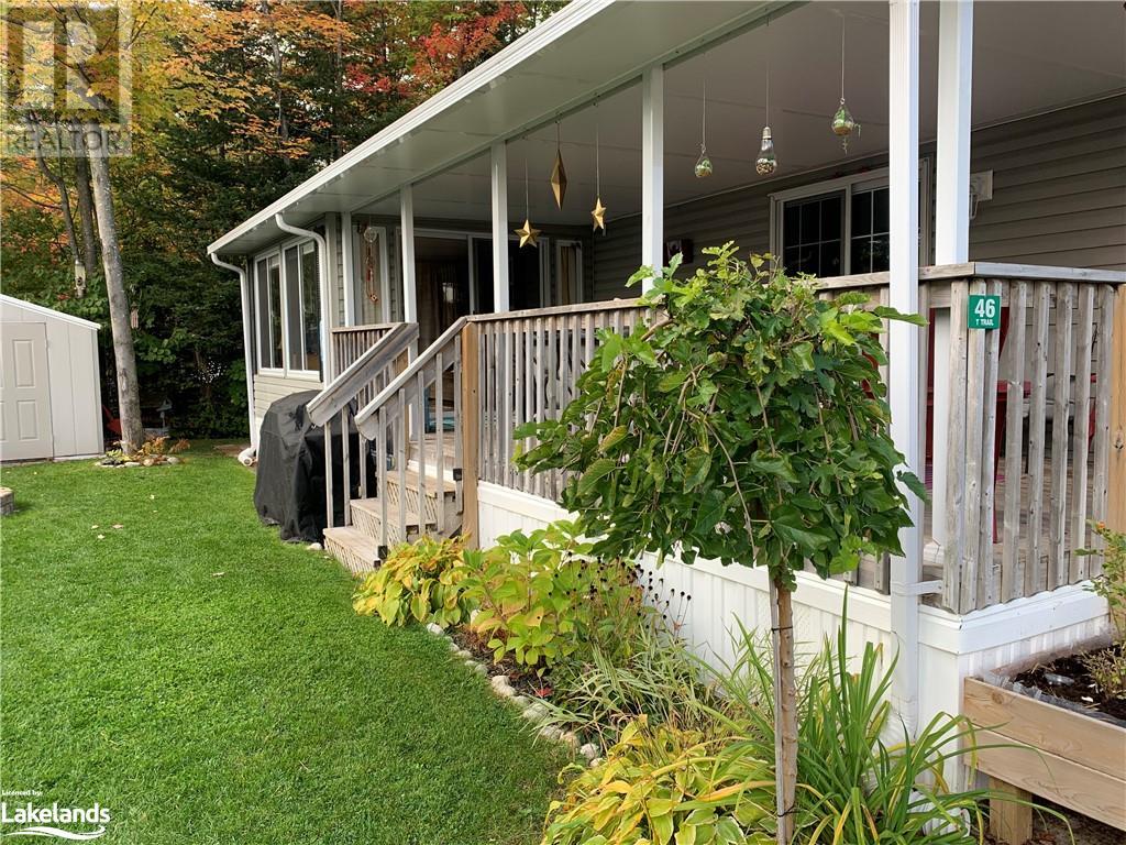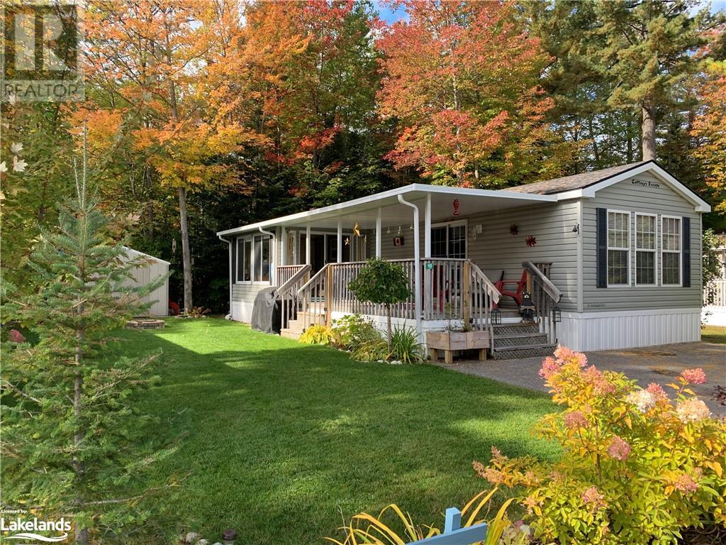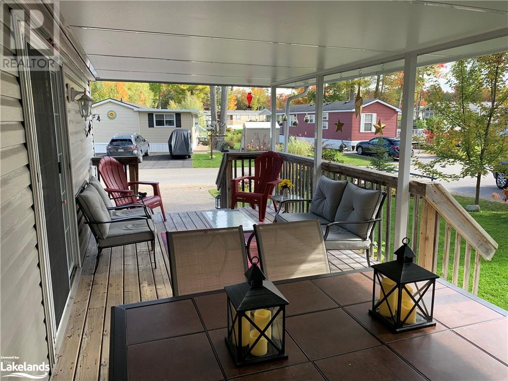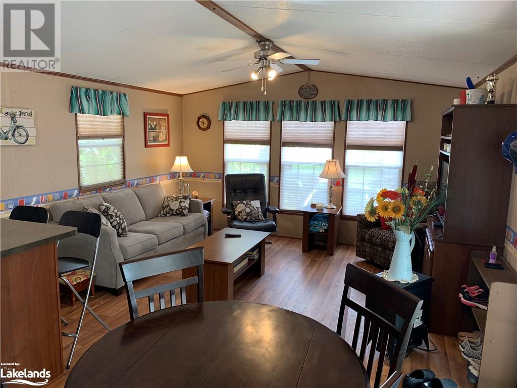 Short walk to the beach! Seasonal retreat in popular Countrylife Resort. (7 months May1st-Nov 15th). This 2010 Northlander Cottager Escape features a 22 x 10 foot deck with full hard roof. Spacious and bright sunroom can be used for extra sleeping area or a quite getaway. Centrally located lot with plenty of space and parking for two cars and a very short walk to the beach. 2 bedrooms 1 bathrooms with lots of room for family and friends. Low maintenance exterior with beautiful lawn and garden, paved driveway, engineered concrete pad under unit and nice size storage shed. Fully furnished with central A/C. This Cottage is ready for your family to start enjoying the summer! Resort features pools, splash pad, clubhouse, tennis court, play grounds, mini golf and short walk to the beach. Gated resort w/security. This unit has been very well maintained and is a pleasure to show! 2023 Seasonal Site fees are $6,765 plus HST (id:37775)