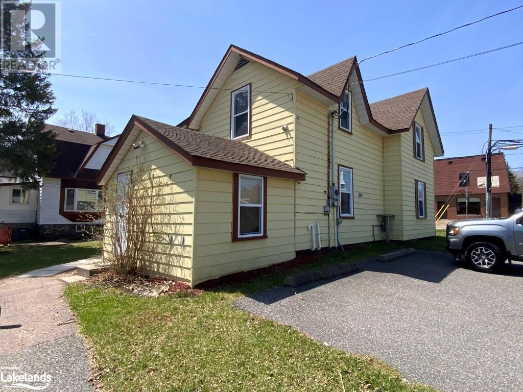 LOCATION! Walking distance to amenities in the heart of Parry Sound! Convert this duplex easily back to a 3 bedroom home. Room to expand and build a garage with living above. Large lot and paved parking for 6. Well maintained home or investment. Main level boasts high ceilings with living room, bedroom with generous closet, kitchen (fridge & stove), laundry, 4-piece bathroom and plenty of storage. Covered patio. 2nd level currently an apartment (can be converted back to 3 bedrooms) has living room with closet, roomy bedroom with closet, eat-in kitchen and 4-piece bathroom with laundry. Bonus space is the enclosed porch. Updates include shingles (2019), natural gas furnace (2021), central air conditioning and some flooring. Separate hydro and water/sewer meters, one natural gas meter for heat and A/C. Actuals: Property taxes $3,195.72 (2022), natural gas $1,381.42 (2022), hydro – sep. meters $1,949.40 (2022), water & sewer – sep. meters $3,448.62 (2022). Let’s discuss the options! (id:37775)