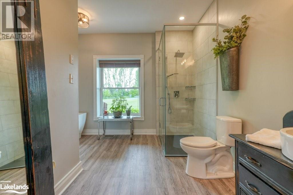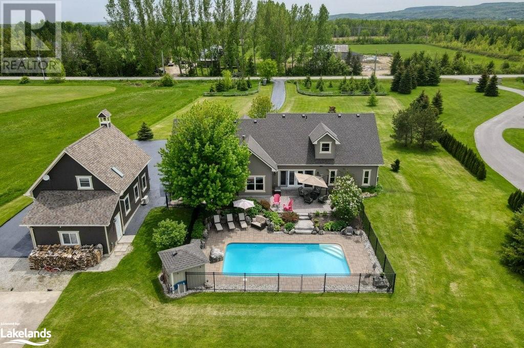 Stunning 4 bedroom home with detached legal one bedroom accessory dwelling (Schoolhouse) set on premium 2.47 acre lot in Nottawa. Main home offers 4 bedrooms, 3 bathrooms and the spectacular accessory dwelling has one bedroom, office, open plan living/dining/kitchen area and laundry facilities are roughed in. This accessory building could be utilised as a guest house for family or friends or as an income generating unit!! The beautiful cape cod home was built in 2005 with ICF construction, from foundation to trusses, making this an economical home to run and sided with beautiful Maibec siding. The main floor offers a master suite with walk in closet and ensuite with electric heated floor. The open plan living/kitchen dining area has slate and hickory floors, custom kitchen with antiqued concrete counters and farmers sink not to mention a beautiful woodstove to keep you warm on those chilly evenings. There is also a second main level bedroom (office or den), powder room, laundry room and access to the 1.5 car garage. The patio doors lead to a fenced pool area, featuring a stamped concrete patio leading to landscaped gardens and a 16' x 32 solar heated saltwater pool with 8' deep end. The 2nd level has 2 good sized bedrooms, a 4 piece bathroom, office space and huge rec. room which could easily be a 5th bedroom. Home is wired for a Generator and has an electric car charger already installed! The accessory dwelling, built in 2013, is heated by radiant infloor heat and cooled by a ductless A/C system. A second garage is attached to the back of the schoolhouse. Located minutes from Collingwood and all major ski hills including Osler, Devil's Glen and Blue Mountain this is truly a one of kind property. (id:37775) Please visit : Multimedia link for more photos and information |