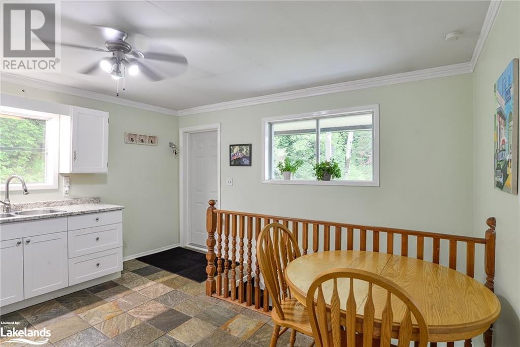 Seeking serenity and an opportunity to move/set-up your business in Muskoka? Enjoy 10.86 acres with more than half of it an elevated forested Muskoka granite ridge with development potential, adjacent to a stream. Check out the video! Meanwhile, live-in or generate a healthy income from an existing recently renovated 920+ sq ft 3 bedroom, 1 bath bungalow. Yet all only 10 minutes to Bracebridge, 20 minutes to Huntsville, 10 minutes to Hwy 11, 15 minutes to Windermere, 30 minutes to Rosseau. Operate your business or rent out the attractive, high visibility commercial space for a variety of uses as it includes a clean, bright, spacious 1000 sq. ft. 2 bay, 12' 4 high garage currently serving as a successful auto repair business. Adjoining it is another 2500 sq. ft. newly roofed building. Wide range of commercial uses of this property given its special RuC1 zoning. Plenty of storage space inside and out. Note: this property is also listed as a commercial property as MLS #40359309. The Seller may consider a vendor take back mortgage subject to approval. See pic for floorplans for both commercial and residential portions. Total property taxes only $1807 (for 2022). Opportunity at so many levels. (id:37775) Please visit : Multimedia link for more photos and information |